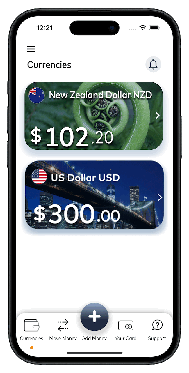 Lock in exchange rates~ each time you load in up to 10 foreign currencies: AUD, EUR, USD, GBP, JPY, CAD, HKD, SGD and AED. Or load NZD to use worldwide.